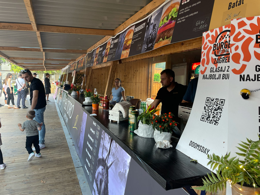 Zagreb Burger Festival preživio je dvije vrlo problematične sezone i čini se da stabilizirao na Trgu dr. Franje Tuđmana. Najvažnija promjena je da se ove sezone proširio na Pulu (samostalno) i Varaždin (u sklopu Špancir Festa). Na ishodištu, u Zagrebu, sve je ostalo više manje isto. U deset dana koliko traje, Burger Festival je glavno mjesto za druženja i odlična alternativa uobičajenom sjedenju na terasama kafića. Dosta ljudi danas je organiziralo piknike u parku, stolovi pred kućicama počeli su se ozbiljno puniti oko sedam navečer, ne znamo što je bilo kasnije kad je došao tornado. Na kućicama su nam se požalili da su pljuskovi uništili petak i nadali su se da će nadoknaditi manjak u subotu. Nije se dogodilo.