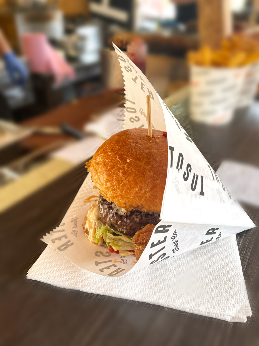 Dosta talenta za okuse pokazuju momci iz novosadskog Tostera, koji prvi put nastupaju na Zagreb Burger Festivalu. Meso su morali nabavljati u Hrvatskoj pa ne znamo kakvi su autentični Tosterovi burgeri, ali Smokey i Local One koji smo probali biil su vrlo dobri. U Tosteru burgere peku medium rare da vas ništa ne pitaju, što je vrijedno poštovanja. Meso je sočno, s laganim mirisom dima pojačanim vrlo dobrom slaninom od mangulice i dimljenim sirom. Tosterov Local One jedan je od atraktivnijih burgera na festivalu. Zove se Local jer ga rade s mousseom od kajmaka, izvrsnim blagim i mirisnim domaćim ajvarom i senzacionalnim duvan čvarcima. Kad se to troje spoji s dimom i pečenom govedinom rezultat je odillčan.