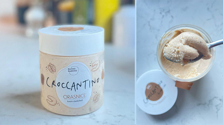 Croccantino je specijaliziran za tradicijske slatkiše, dakle amarete, krokantine, orasnice, ušećerene oraščiće i slično. U slastičarnici na Pelješcu već odavno prodaju gelato, a njihov pakirani zanatski sladoled za supermarkete odabran je u sklopu treće sezone operacije Startaj Hrvatska, kojom Spar testira i afirmira male hrvatske zanatske proizvođače. Pa sada ne morate ići na Pelješac da biste probali Croccantinove sladolede. Mi smo u srijedu kupili orasnice, jer je riječ o jednom od njihovih najpoznatijih slatkiša a i zanimalo nas je kako će njegov autentični okus prenijeti u sladoled.