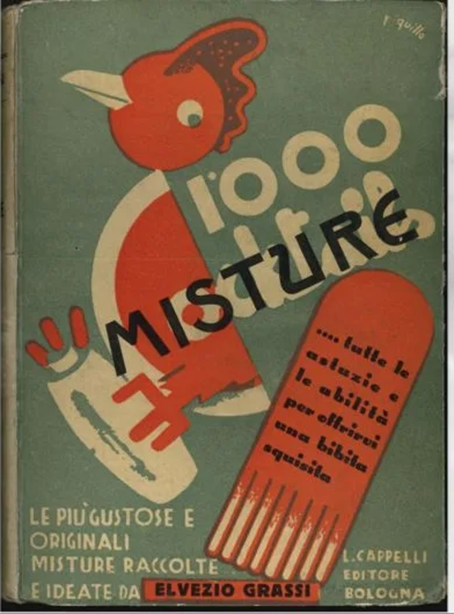“Sprizzi, spruzzi, sprazzi. Verde, bianco, rosso, turchino giallo rosso rosso rosso…. Zicche zacche zacche zicche, btrtrt…. Ecco il cocktail, il “coda di gallo” Ovo je početak, tipičan futuristički, knjige o koktelima Elvezia Grassija iz 1936. naslovljene 1000 mješavina. Zbog američke prohibicije ranih dvadesetih, scena koktela u Europi je cvjetala. Futuristi su koktele nazvali polibibite i činilo se da jako cijene beskrajne mogućnosti kombinacija. Uz klasike, Elvezio Grassi piše i o “modernim super koktelima” nazvanima po fašističkoj modi Adua, Ascaro, Maresciallo de Bono ili Maccallè, uglavnom na bazi talijanskih destilata, likera, vermuta i amara. Ipak, uz tog doba vrlo su rijetke kuharice koje slave Ducea. Mussolini je imao problema sa želucem i bio je izbirljiv s hranom. Volio je uglavnom tradicionalnu rimsku kuhinju. Svoje probleme s probavom predstavljao je kao znak superiornosti “Od svog sam organizma stvorio precizan, kontrolirani motor koji radi bez greške…Moja pravila prehrane su čvrsta, moji obroci oskudni.”