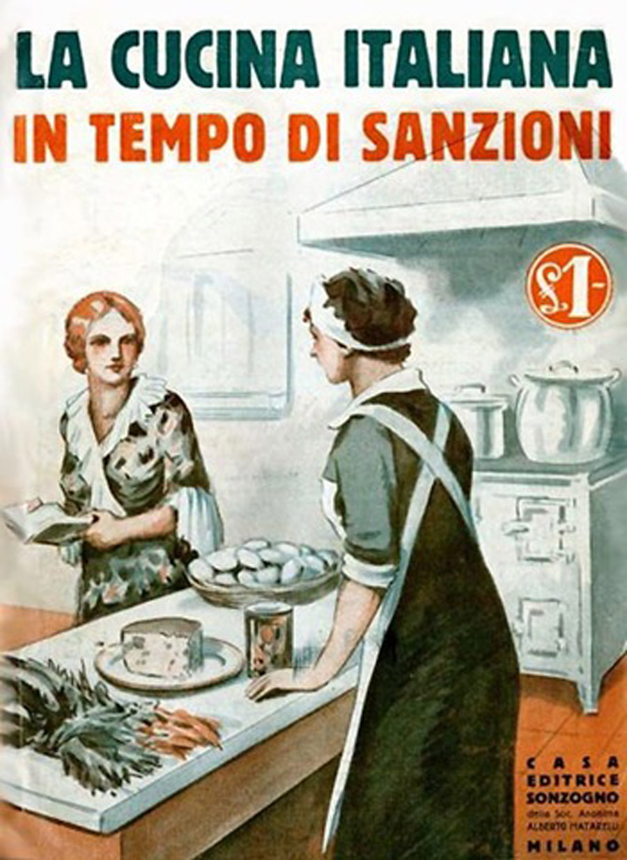 Dok je Italija zbog napada na Etiopiju između 1935. i 1936. bila pod sankcijama Lige naroda, rekordnom brzinom tiskale su se kuharice s praktičnim savjetima domaćicama kako da pronađu alternativu namirnicama kojih je nestalo s tržišta. Najpoznatija takva kuharica, Talijanska kuhinja otpora, nudila je razna rješenja, neka od kojih nisu bila baš genijalna. Primjer je recept za zelene tagliatelle bolognese, bez ragua, koje su se pekle samo s bešamelom.