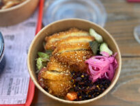 Večeru smo počeli ukusnim gazpachom sa sladoledom od gorušice, uz koji je servirana rakovica sa slanim tučenim vrhnjem s vlascem. Slijedio je plavi hlap prekriven debelim slojem želea: žele je pomalo kontaminirao bogati okus rakova mesa.