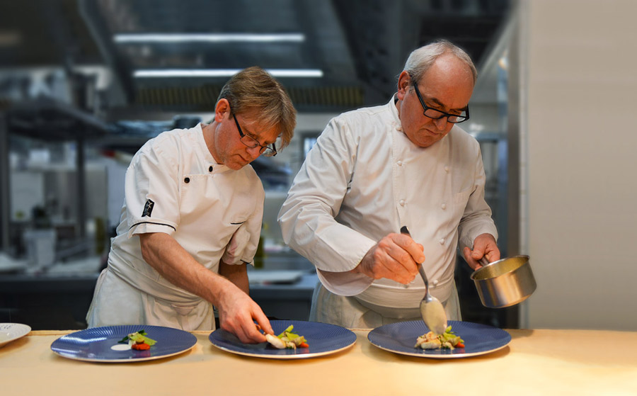 Grand Cerfov meni beskompromisno je luksuzan: jastozi i škampi, kavijar i kamenice, gusja jetra i teletina iz Limousina, divlji losos i rakovice. A hrana izgleda baš kao s fotografija iz starijih izdanja Cordon Bleua ili iz samog Velikog Pellaprata.