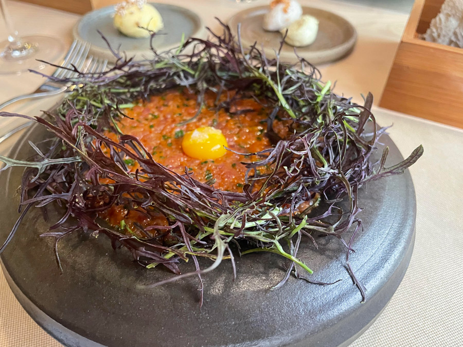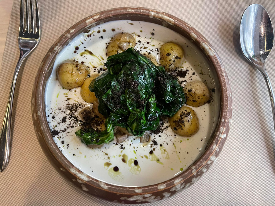 Gusta, teška tekstura koja se ponavlja već godinu dana, dakle i u vrijeme kad je Pavlic osobno kuhao, bezvezna je pogreška. Tu je pogrešku lako izbjeći određenim, nevelikim postotkom temeljca od vrganja, koji bi dodatno intenzivirao okus, a juhu učinio zaista juhom a ne prekremastim umakom.