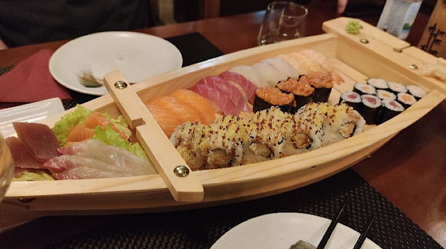 Zanimljivo je spomenuti da su u japanskom sushi restoranu, ne računajući setove za više ljudi, uvjerljivo najskuplja dva kineska jela od patke. No, lokalu koji se ponosi sushijem s pohanom ribom i rakovima, kvaliteta sastojaka zaista nije važna.