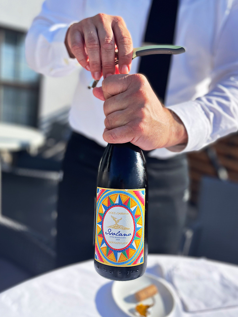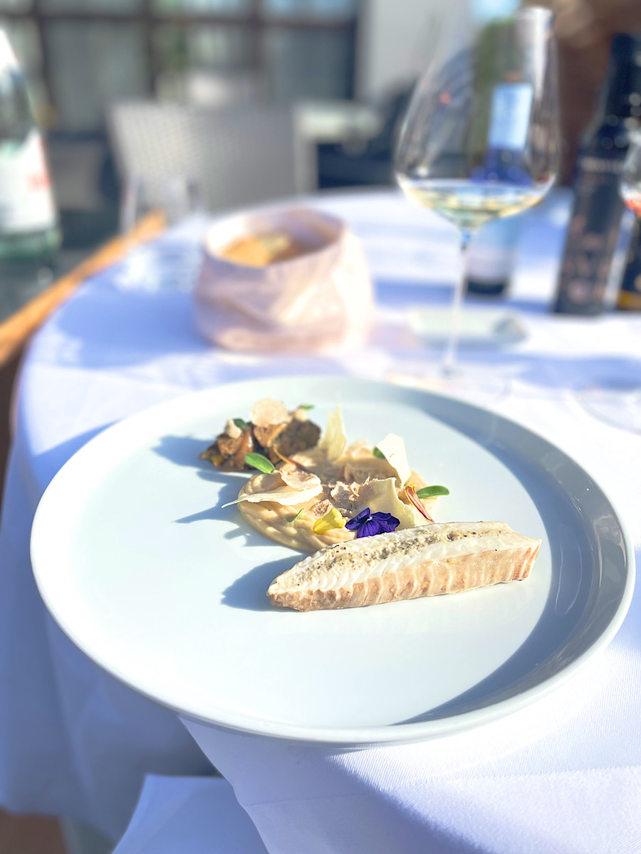 Vinska lista nije preduga ali je uzbudljiva: otvara se s više od deset šampanjaca, sadrži niz istarskih klasika, važne prirodne vinare od Gravnera i Podveršiča do Tomca, kao i našem tržištu nepoznata ali zaista izvrsna vina poput Donnafugatinog Carricantea. Carricante je sicilijanska bijela sorta s visokom kiselinom, koja može davati ekstremno mineralna vina, a Donnafugatine etikete u Hrvatskoj distribuira zagrebački G3. Osim ovog sjajnog vina s Etne pili smo duboku, ozbiljnu Jakončičevu Uvaiu (macerirani sivi pinot iz jaja) i veseli Taittingerov Rose Prestige, koji se prirodno složio s gotovo vrućim listopadskim danom.