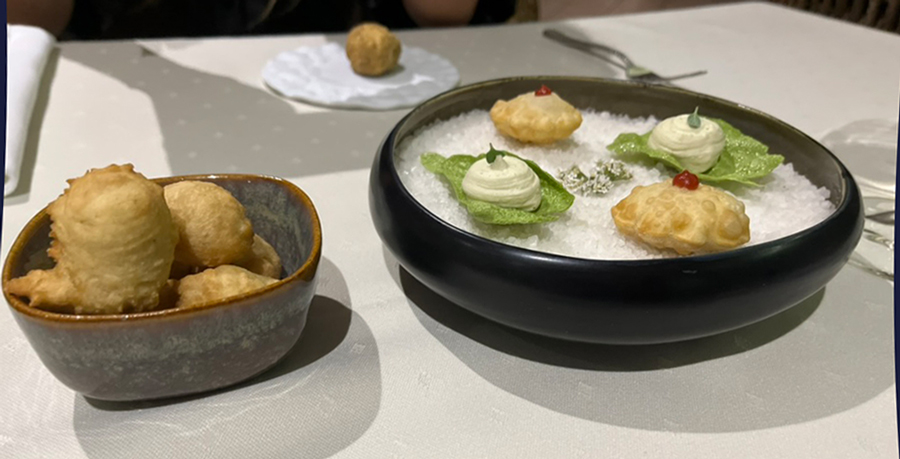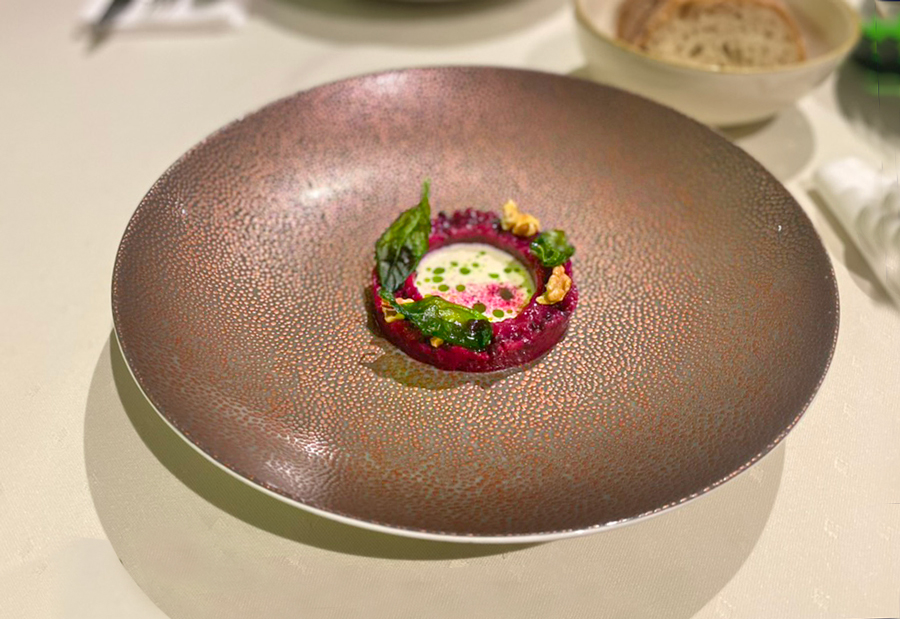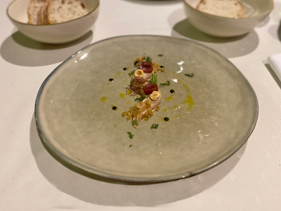 Fritule punjene sirom, krema od brancina na rižinom krekeru i imitacija tartufa punjena sirom i vrganjima odmah su pokazali da Mahorčič misli ozbiljno. Svaki zalogaj je maksimalno pogođen, s laganim okusima sasvim dovoljnima za početak večere. Slijedi cikla, nezaobilazna namirnica gotovo svih restorana, zbog čega čim čujemo cikla očekujemo nešto dosadno i već viđeno. Mahorčič, međutim, osporava tu predrasudu. Njihov tartar od cikle može se boriti sa svim fine dining izdanjima od Tiana do Griča. Ovu ciklu, osim same cikle, izdvajaju kiselo mlijeko, lješnjak, leća i listovi blitve koji je okuse dižu za nekoliko nota. Prilično je neobično da se u stvarno malom listu blitve osjeti cijela namirnica. Takvi su se momenti ponavljali cijelu večer.