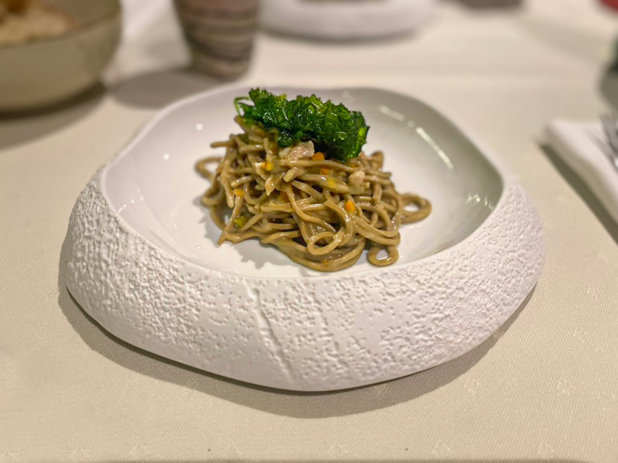 Pileća pašteta, iako djeluje jednostavno, funkcionira vrlo dobro kao meki uvod u glavna jela, jeftnija verzija foie gras koja u nekim kontekstima funkcionira i bolje od gusje jetre. Pašta s kestenom, mrkvom i kokoši je ultimativni sezonski comfort food. Kestene nije lako uklopiti u slana jela, no chefica Mahorčič postiže više nego uspješan rezultat.