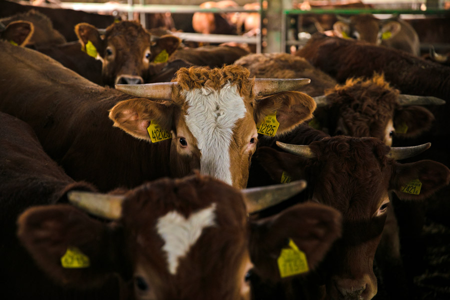 Krave i junice, telad i bikovi, stvorenja su koja vole pozirati. Kad smo ih prošlog petka fotografirali na velikoj Agro Vetovoj farmi u Križevcima, gdje u jednom turnusu boravi između 1000 i 1200 životinja, bijeli charolaisi, crni angusi, smeđi limousini i smeđe bijeli simentalci znatiželjno su se skupljali oko nas, gotovo da su gurali njuške prema objektivu, ali su istodobno skrivali sredinu boksova, kao da su od fotoaparata pokušali zaštiti goveda koja nisu bila raspoložena za foto session.