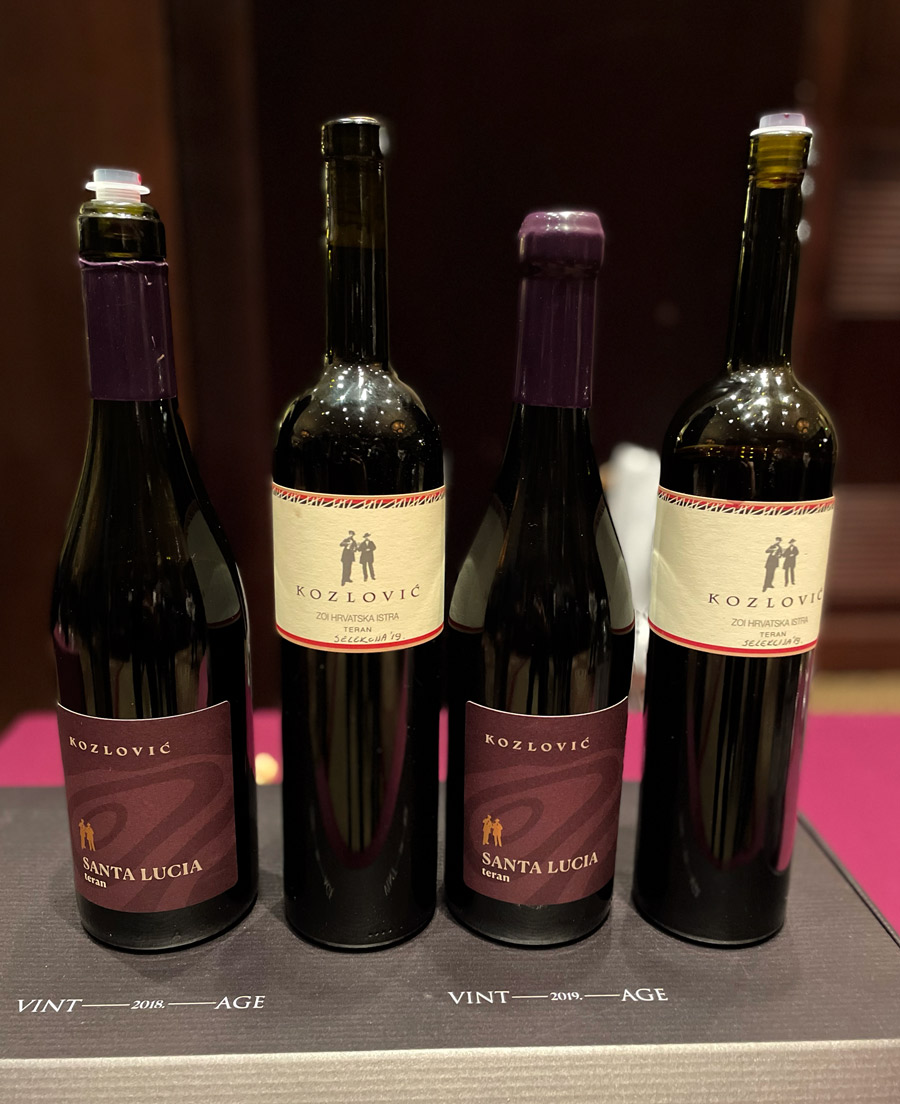 Benvenutijev Teran iz 2018. primjer je vrhunskog mladog crnog vina, dok Kozlovićev Teran Santa Lucia iz iste berbe, koji još nije na tržištu (i ne zna se kad će doći na tržište) ostavlja dojam klasičnog, aristokratskog Bordeauxa.
