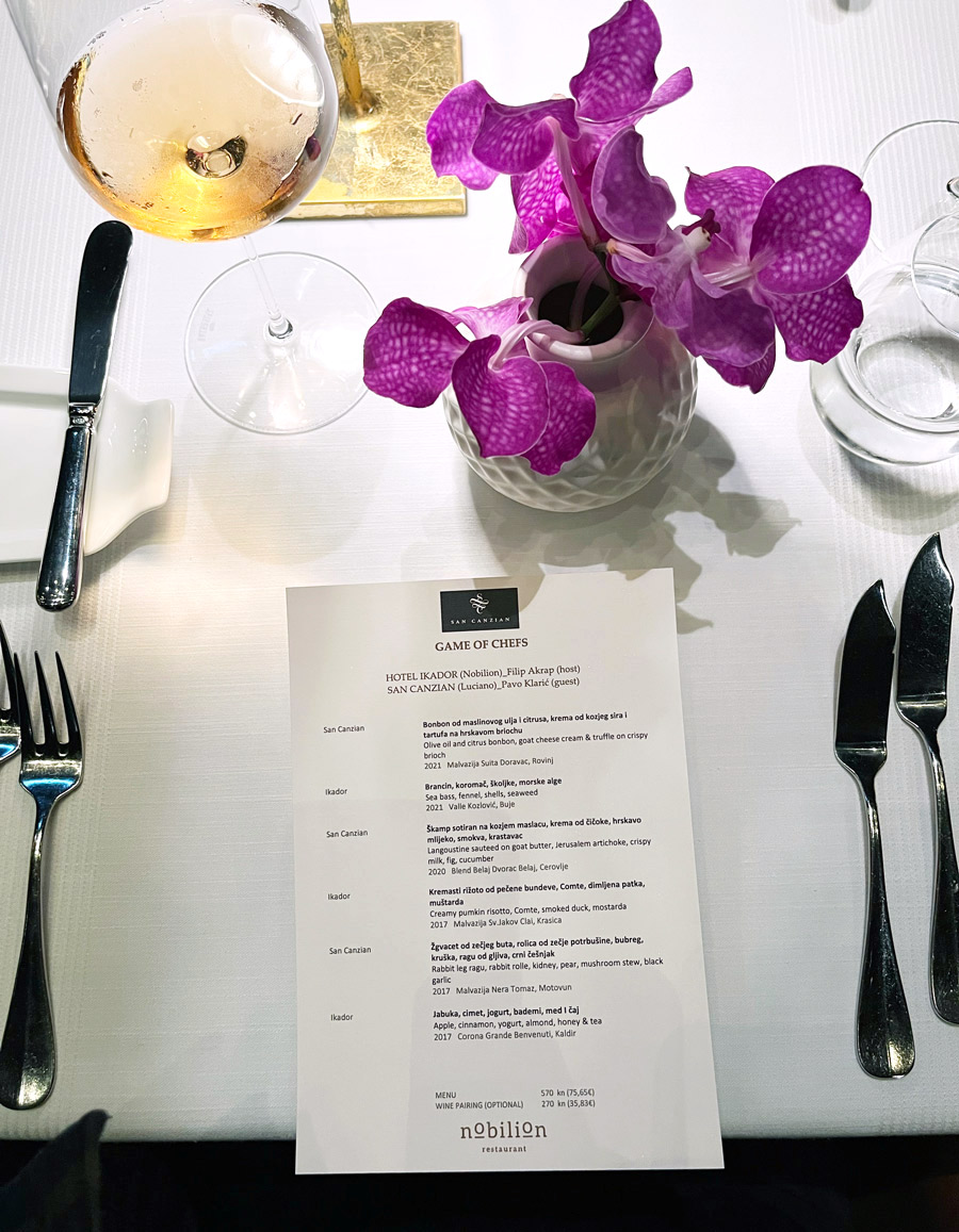 Game of Chefs u Nobilionu, gostovanja vodećih hrvatskih chefova u restoranu hotela Ikador, jednog od najboljih kvarnerskih hotela, postali su iznimno popularni eventi. Sinoć je u Nobilionu gostovao Pavo Klarić, glavni kuhar Luciana, restorana luksuznog istarskog hotela San Canzian. Chef Klarić radio je u Esplanadi s Anom Grgić Tomić i s Dinom Galvagnom u Lucianu, a ovo mu je prva sezona na poziciji glavnog kuhara.