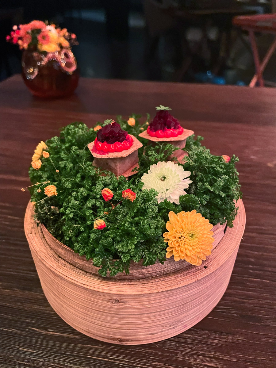 I tu je nastao mali problem; ta terina od purice između dvije hrskave pločice zaista jest imala okus po običnoj, bazičnoj purici s mlincima. Strašno puno rada za pomalo svakodnevan okus. Sličan se efekt ponovio kod bunceka: minuciozno pripremljeno jelo od desetak elemenata s različitim teksturama, na kraju je imalo okus po bazičnom bunceku.