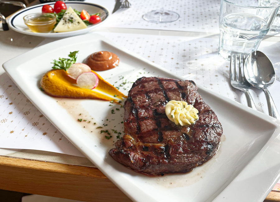 Možda se radilo o grass fed kravama, ali to se onda mora naznačiti na jelovniku. Okus je bio odličan, pun goveđeg esktrakta i Maillardove reakcije, ali tekstura nije valjala; meso je svojom razmjernom žilavošću zapravo, podsjećalo na flank steak (bavette), a ne na ribeye.