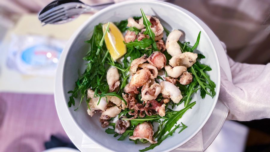Kažu da su tako dobri kovači i jednako raskošne škrpine i zubaci kraljevi svakog vrhunskog ribljeg ručka (ili večere). Premda je Kaiserov šanpjer doista bio izvrstan, to jučer nije bilo točno. Umjesto plemenitog kovača, kraljice našeg predpobjedničkog ručka na Kajzerici, bile su male, skromne i beskrajno slatke sipe. Gotovo nikad u Zagrebu nismo probali tako ukusne, hrskave, slasne i sasvim nježno prepržene sipice, kojima nije trebao nikakav umak, kondiment ili prilog. One su govorile same za sebe i svojom su uvjerljivim argumentima nadmašile čak i prvorazrednog kovača.