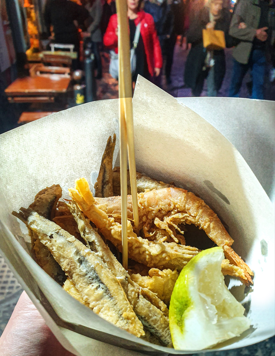 Napule è ‘na carta sporca, e nisciuno se ne importa, pjeva Pino Daniele u svojoj ljubavnoj posveti rodnom gradu. I stvarno, napuljske ulice prepune su šporkih karti za koje nitko ne mari, ali i bezbrojnih lokala brze hrane koji značajno doprinose količini tog smeća. Napuljski fast food posjeduje pažljivo brendiranu, romantičnu auru, ali u stvarnosti je kalorijska bomba često upitne kvalitete. Masni aranzini ili kroketi (crocchè) i na razvikanim uličnim mjestima mogu podsjetiti na đuveč ili pire pohan u starom ulju, a ista hrana tek u boljim bistroima i kvalitetnim pizzerijama pokazuje svoje pravo lice i opravdava vlastitu reputaciju. Ako čovjek ipak poželi pojesti nešto s nogu, najpametnija ideja je papirnati tuljac s miješanom prženom ribom (cuoppo misto mare/cuoppo di pesce); friški, vrući inćuni, neočišćene kozice i lignje s malo limuna u friggitoriji Verace kraj Piazze Bellini bili su slatki, hrskavi i sočni, pravi ulični comfort food u najšarmantnijem obličju.