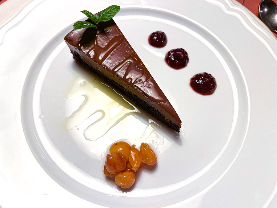Za desert smo dobili čokoladnu tortu s maslinovim uljem, džemom i slatkim od trešanja. Desert je blag, ali upravo to smo i trebali nakon ogromne količine hrane. Za hranu u slijedovima Toklarija priprema apsolutno previše toga. Imali smo osjećaj da smo pojeli dva ručka, a to nam se rijetko događa. Tu je i pitanje je li Toklarija preskupa. Ručak za dvoje i butelju fantastičnog Tomazovog Sesto Senso platili smo 150 eura. Za količinu hrane po tanjurima možda i nije previše, no nismo dobili niti jedan iole luksuzniji sastojak, što je porazno u odnosu na cijenu.