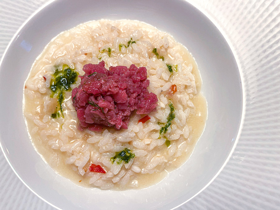 Rižoto aglio-olio želimo što prije zaborviti. Ideja nije loša, pretvoriti jednu od najpopularnijih talijanskih jela u formu rižota i dodati mu medvjeđi luk i tartar biftek. U praksi niti jedan element jela nije uspio. Rižoto je bio brutalno prekuhan, što ga odmah diskvalificira od ikakve daljne diskusije, a i ponovno se javlja problem iz predjela, češnjak. Ovdje je češnjak još intenzivniji i ostavlja još snažniji aftertaste da smo ga satima nakon osjećali. Siroti tartar biftek, pravilno nasjeckan, nakon nekog vremena se jednostavno skuhao na vrućem rižotu, pa smo tako pri kraju jela imali nešto nalik na mljeveno meso u tanjuru. Rižoto je jedini tanjur koji zaista nije valjao u Toklariji, preporučamo vlasniku da ga što prije makne s jelovnika.