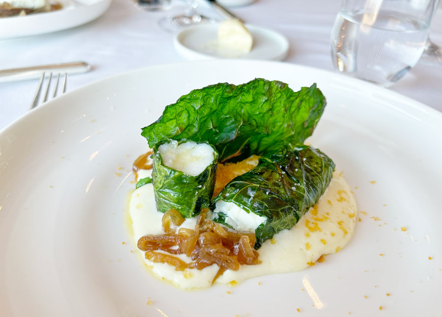 Jedno od predjela, bakalarove tripice, u cijelosti se oslanja na tu namirnicu, koja u interpretaciji Esplanadine chefice poprima finu teksturu svježih liganja. Juha od kestena servira se s paštetom od janjećih iznutrica, koja izgleda poput foie gras, dok se poširano jaje s tartufima poslužuje s telećim brizlama. No, najukusnije jelo koje smo danas probali bila je gusta juha s triljom i dagnjama.