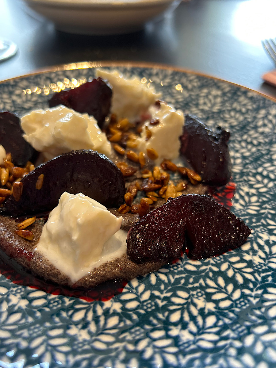 Vinska karta sadrži tridesetak etiketa inozemnih i hrvatskih prirodnih vina. Kruh dolazi iz Sala, što znači da je fenomenalan. U srijedu oko jedan u Bekalovoj su se otvorenoj kuhinji zapalile vatre. Prvo jelo s vatre koje smo probali, bio je tahini od maka, s mariniranim škripavcem i pečenom ciklom.