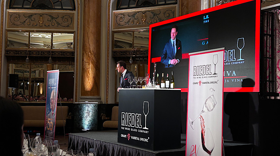 Maximilian Riedel, predsjednik najpoznatije svjetske tvrtke za proizvodnju vinskih čaša, izvanredan je prezenter. Gospodin Riedel jučer je u Smaragdnoj dvorani hotela Esplanade punih sati pol zabavljao 126 sudionika prezentacije čaša Veloce, i dosta uvjerljivo objašnjavao zašto pojedino vino bolje funkcionira u čaši dizajniranoj baš za tu sortu, a zašto lošije funkcionira u drugim čašama.