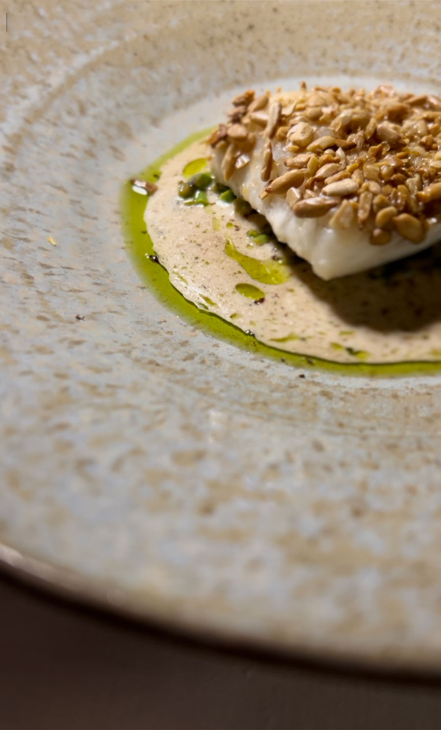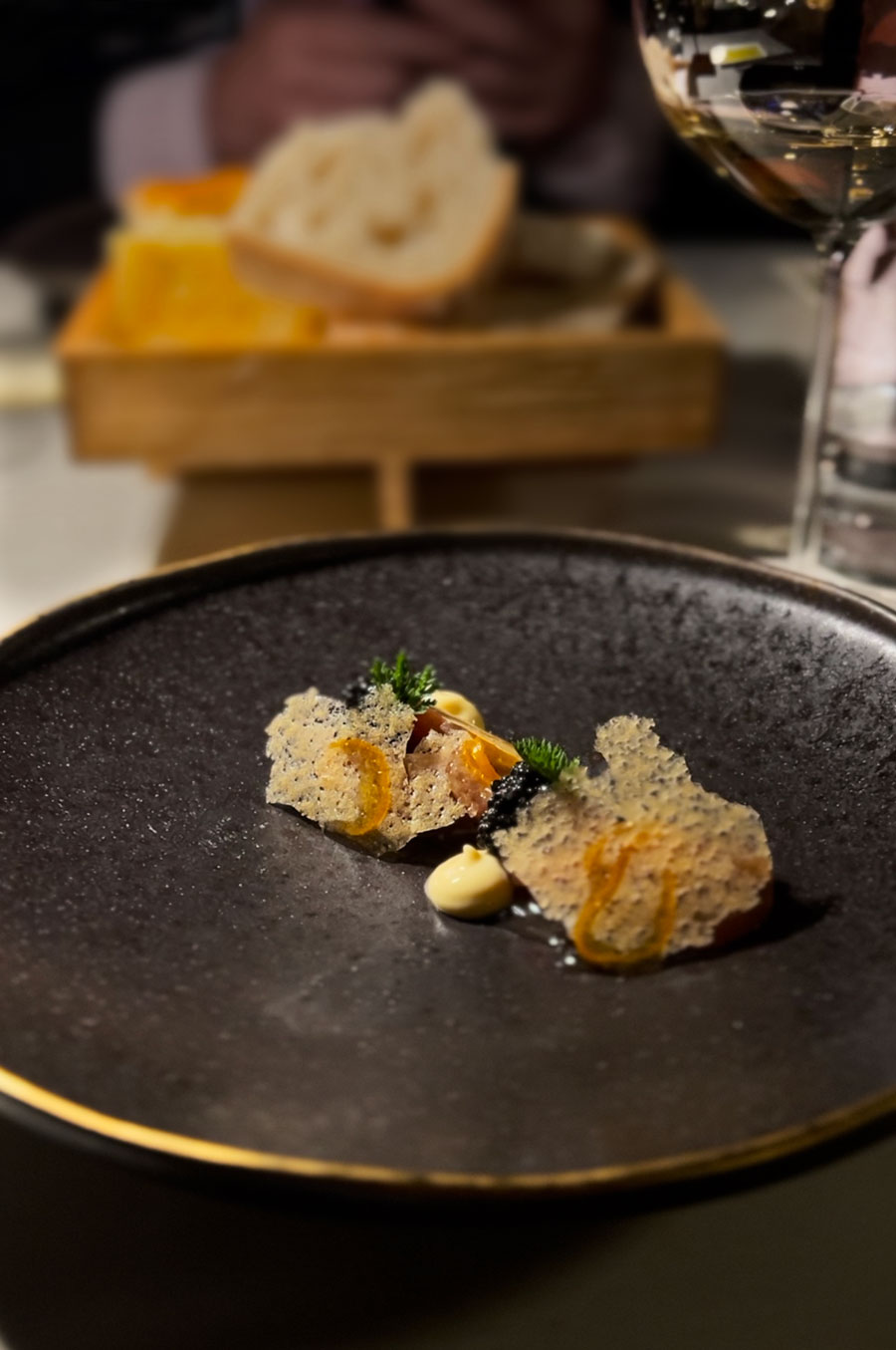 Rezanci od tune s kavijarom i aiolijem of sezama bili su luksuzni i originalni: sirova tuna i kavijar u Hrvtskoj nisu baš najčešća kombinacija. Palenta od stare sorte kukuruza s tartufima raskošni je comfort food, dok je želatinozni romb na tartaru od šparoga i medvjeđem luku predstavljao sjajan primjer sezonskog kontekstualiziranja jedne od najukusnijih bijelih riba.