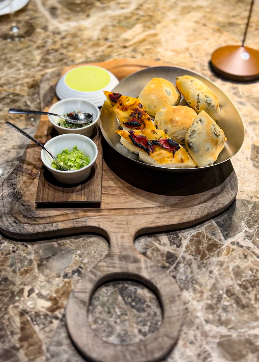 Na stolu se se od couverta nalazile još zdjelice s izvrsnom soli s limetom i čilijem i još efektnijom soli s ginom, koja fenomenalno ide uz crvenu govedinu. Malo tko u Hrvatskoj tako precizno, pažljivo i atraktivno servira steakove , kao Sophia, steakhouse pulskog hotela Brioni. Steakovi su bili veoma ukusni, koncentrirani i i bogati. Predjela nisu zaostajala.