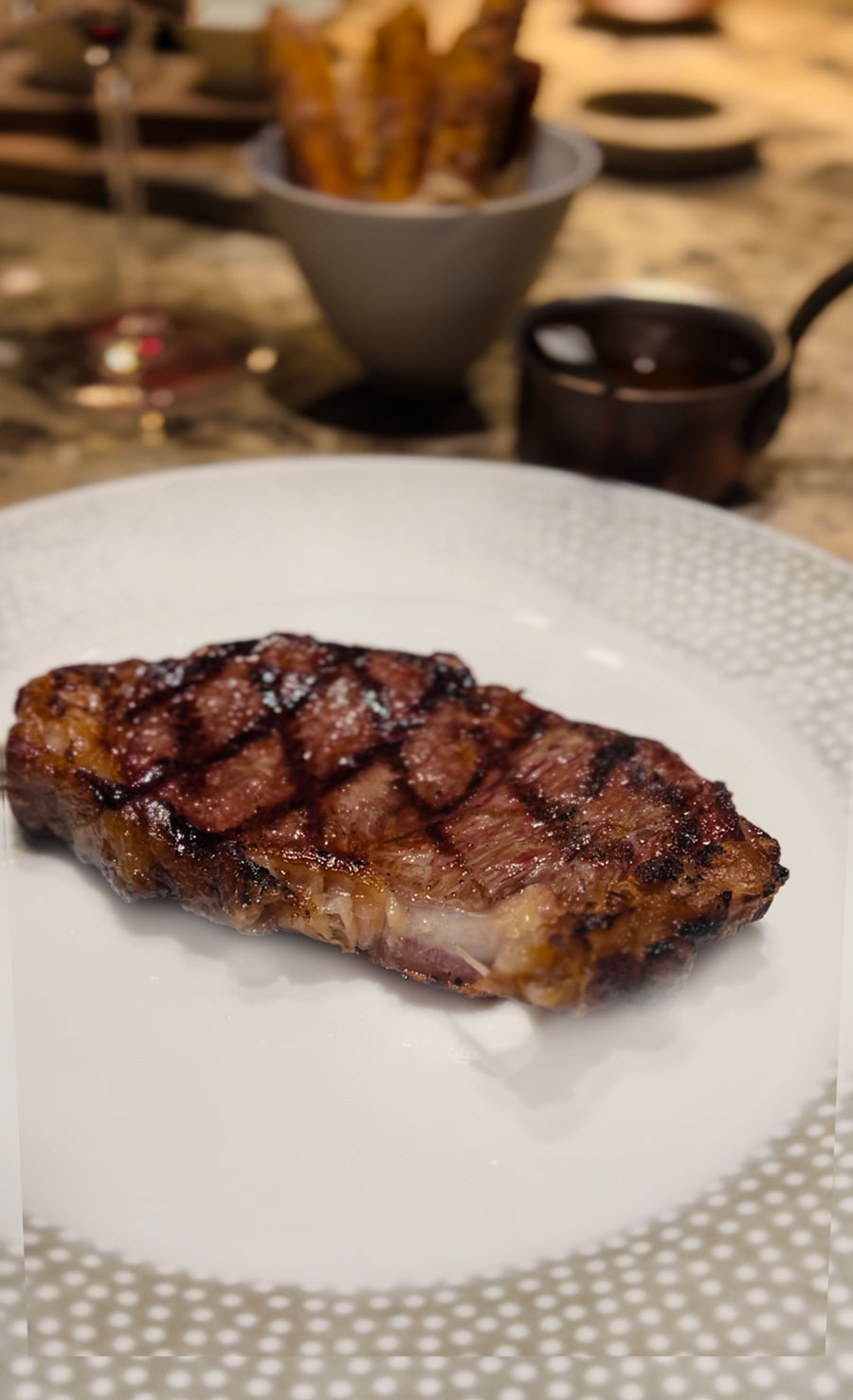 Sada se, međutim, u Hrvatskoj bez problema mogu nabaviti domaći steakovi odležavani između 60 i 90 dana; razlika u mramornosti i okusu lako je uočljiva. Ambiciozani, luksuzno uređeni steakhouse u luksuznom hotelu trebao bi držati i te zaista superiorne, orašasto umamijevske steakove.