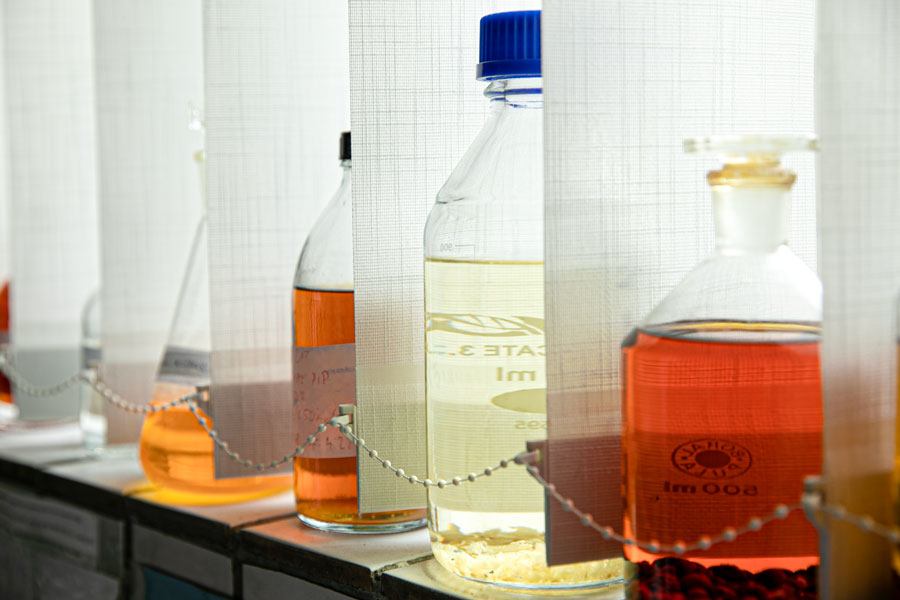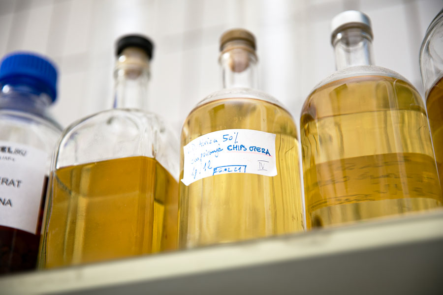 Vesna Jurak odvela nas je kroz cijeli Badelov pogon u Gospićkoj ulici, po visokim platformama iznad golemih tankova s vinom, u manju svijetlu sobu, možda petnaestak kvadrata, koju bi zapravo trebalo pokazivati svim Badelovim poslovnim partnerima, zatim barmenima, F&B menadžerima, ali i destilerima. U toj sobi gospođa Jurak i dvije njene kolegice stvaraju čarobne napitke, koji kasnije postaju osnove Badelovih jakih pića.