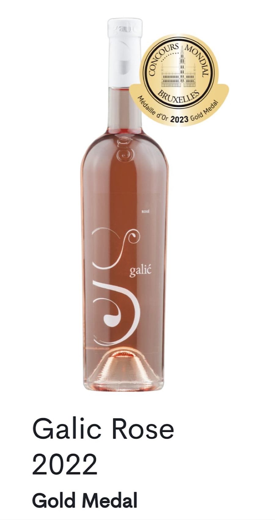 Galićev Rose iz 2022. sastoji se od 40 posto cabernet sauvignona, 40 posto merlota i 20 posto crnog pinota. Vino je šarmantno voćno, s herbalnim elementima