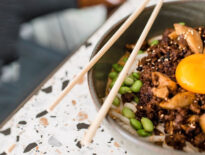Hrskavi zalogaj od umeboshija u obliku osušene grančice spada među najslasnije i najoriginalnije pozdrave iz kuhinje koje smo probali bilo gdje, a ne samo u Hrvatskoj. Šparoge glazirane redukcijom pelinkovca genijalan su spoj sezonskog i lokalnog. Sezona je šparoga, a pelinkovac je autentično hrvatsko piće, koje se proizvodi i u Istri.