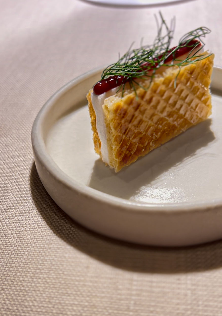 Vichyssoise s puno zelenih listova preukusna je, raskošno bogata posveta proljeću. Scarellova focaccia nadmašila je sve focaccie iz hrvatskih zanatskih pekarnica. Rižoto s usoljenim limunom i morskim travama tehnički je savršen, s intenzivnim, vibrantnim okusom.