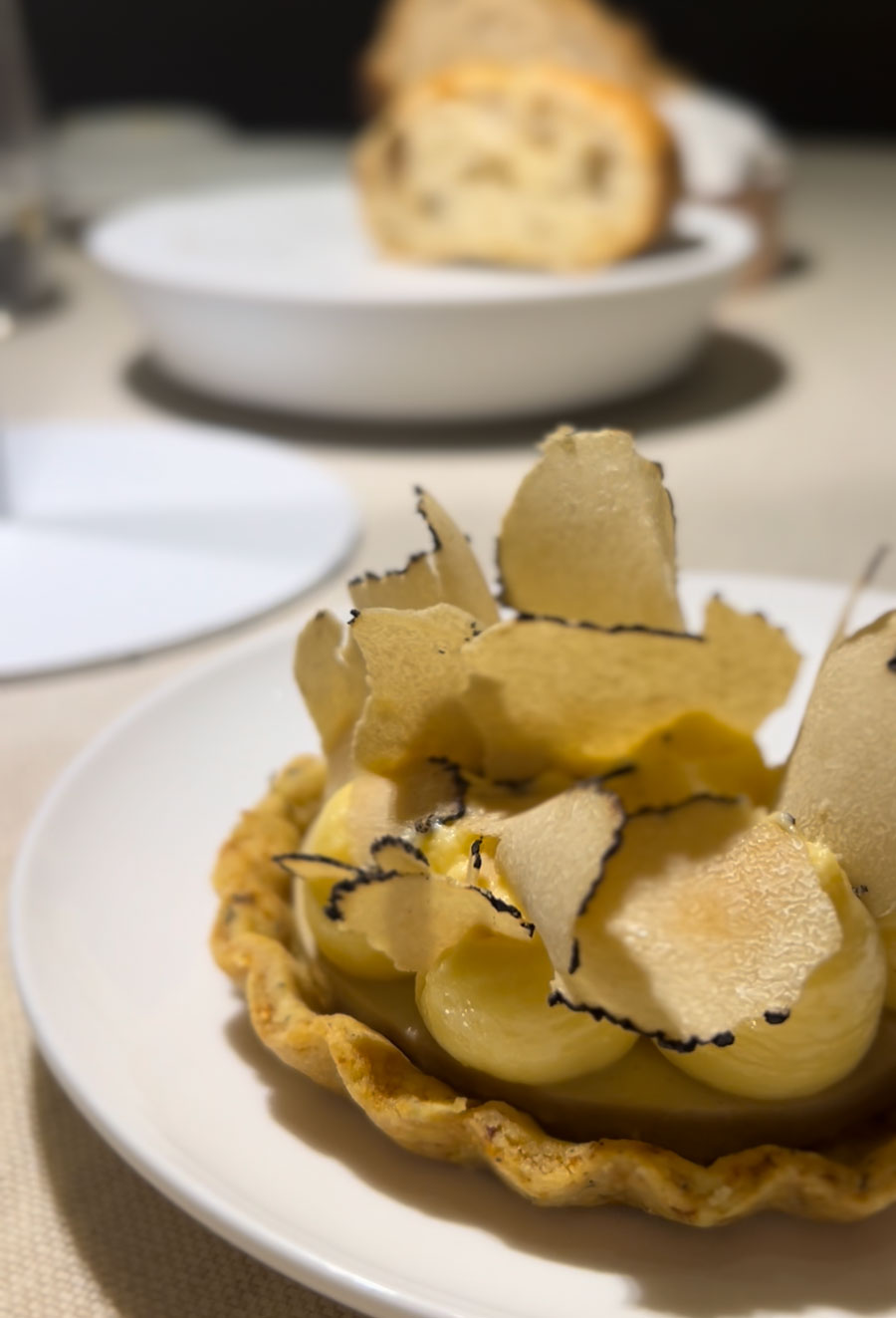 Šparoge su gorke, pelinkovac je gorko-sladak, a njihova kombinacija čini valjda najugodniji gorki herbalni okus koji smo probali. Stabljike zelenih šparoga bile su, naravno, oguljene sve do vrhova, što je konvencija u visokoj kuhinji koje se u Hrvatskoj nitko ne drži. Tart punjen kremom od Velog Jože svojim je bogatstvom i aromatikom savršeno kontrirao gorčini.