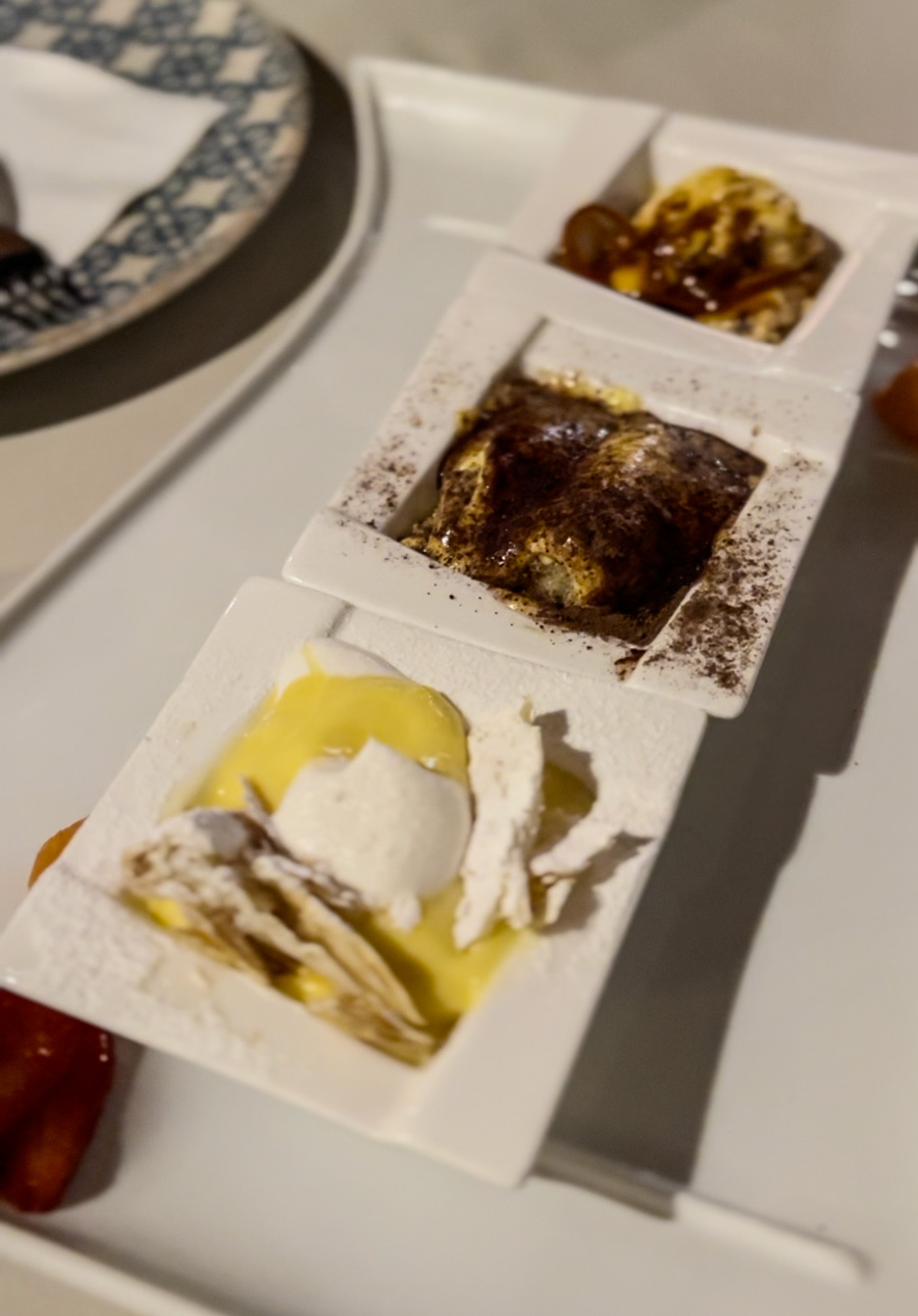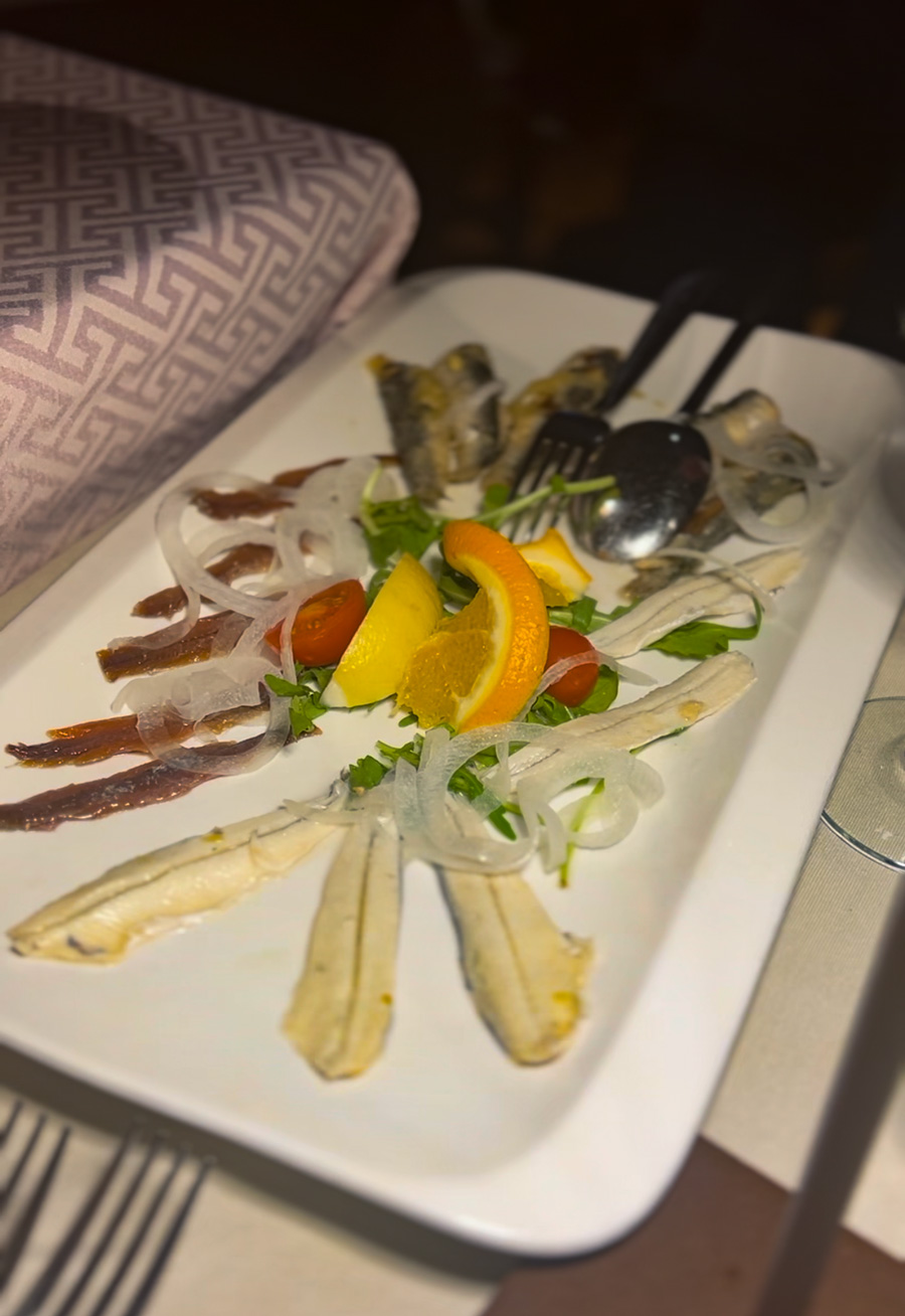 I mesna su jela jednako obilna; naš dragi rovinjski prijatelj pričao nam je kako je prije dvadesetak dana doma odnio dosta teletine ispod peke, jer u restoranu nije mogao sve pojesti. A protvani sa zapečenim brudetom, kućnim specijalitetom, doslovno zauzimaju pola stola za četvero. Deserti, posebno među gostima vrlo popularna Fantazija koja se poslužuje na velikim ovalima, ne zaostaju u veličini.