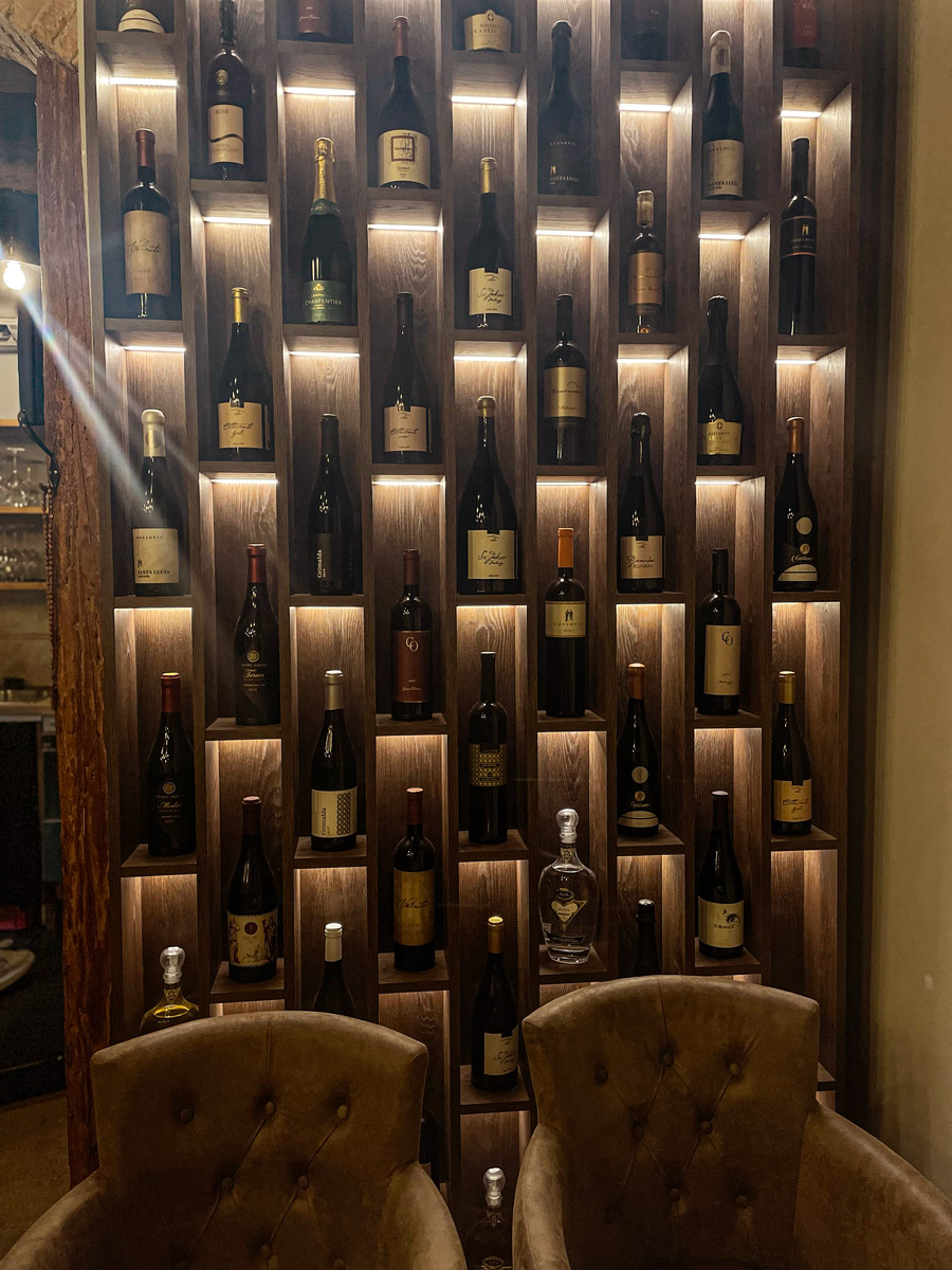 Karta sadrži tridesetak kompetentno odabranih etiketa; riječ je uglavnom o istarskim vinima, plus biodinamički šampanjac Charpentier. Pošto smo bilo malo umorni od mladih vina, poželjeli smo popiti nešto macerirano ali elegantno. Mlada vlasnica ponudila nas je Nonnom Franca Cattunara iz 2015. godine. Nonno je graciozna, ekstra bogata, dugo macerirana i vrlo rijetka malvazija koja je prije par godina na Decanterovim Svjetskim nagradama osvojila 97 bodova i platinastu medalju.