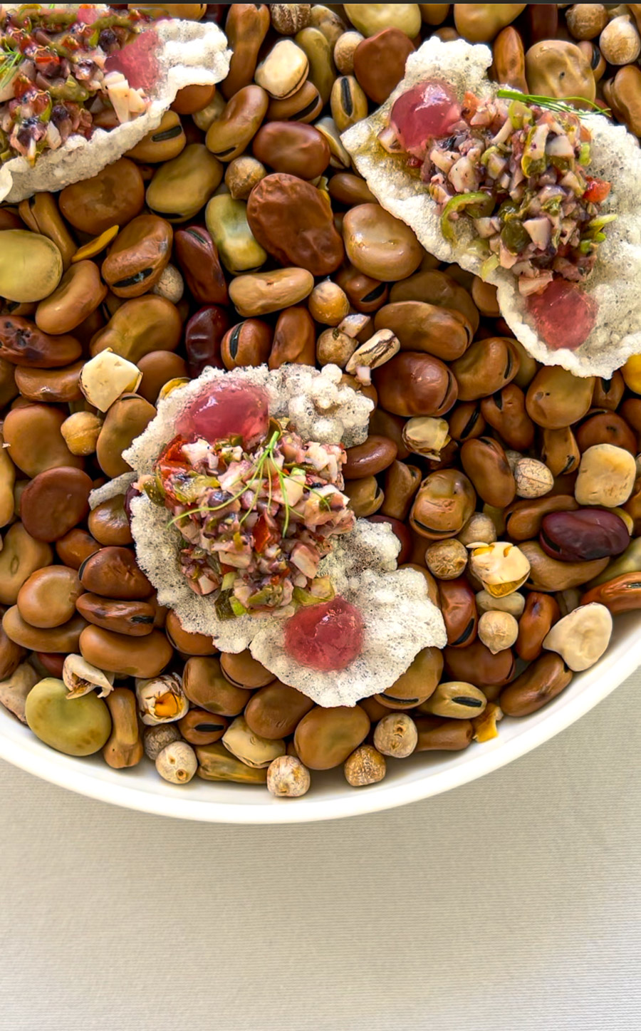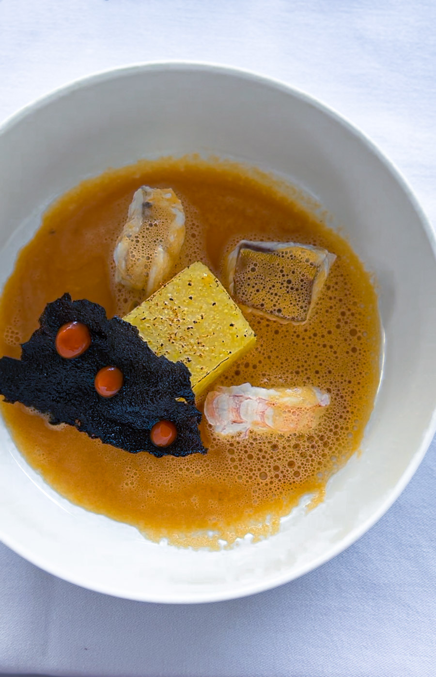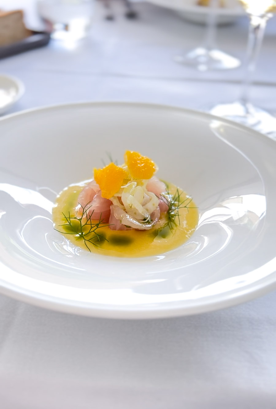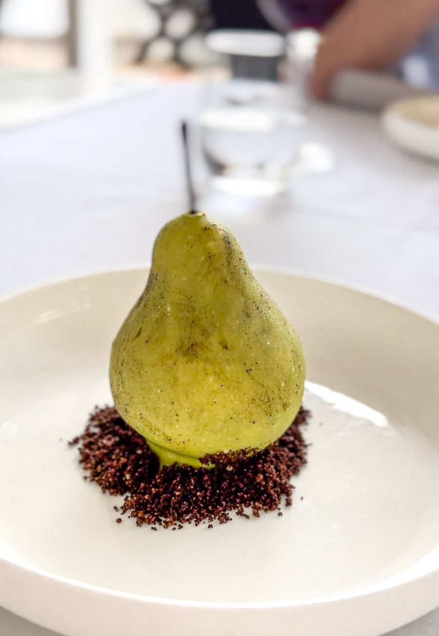 Ceviche od gofa, prvo predjelo, izgledao je izvrsno i bio je prepun svježih svijetlih, ljetnih aroma i okusa citrusa i koromača, ali su mu nedostajali čiliji. U knjizi Peru: The Cookbook, Gaston Ocurio, utemeljitelj moderne peruanske kuhinje, navodi 43 recepta za ceviche i tiradito: svi recepti sadrže čilije u različitim formatima. Među desertima se, pak, istaknula Kruška inspirirana dizajnom Cedrica Grolleta, dosta uspješna verzija jednog od najpoznatijih novijih francuskih slastičarskih klasika.