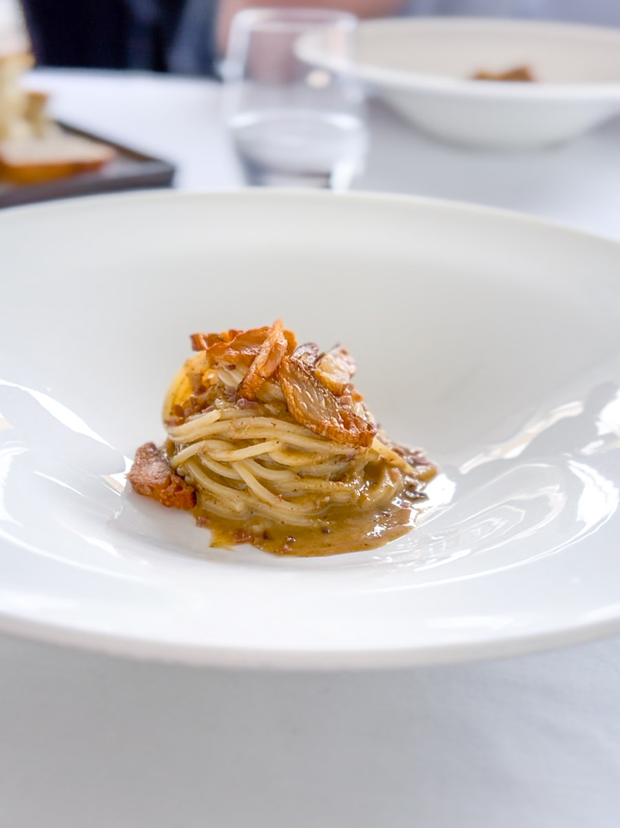 Boba je stekla nacionalni ugled i masovnu popularnost relativno jednostavnim verzijama prilično lokalnih, kornatskih ribljih delikatesa. Bašićeva hrana danas je sve prije nego jednostavna i u konceptima i u izvedbama i u prezentaciji. Morska “carbonara” naš je apsolutni favorit s novog Bašićeva menija. Umak za tjesteninu bazira se na dagnjama, hrskavi komadići sušenog mola glume guanciale, dok se domaća botarga od brancina riba umjesto parmezana.
