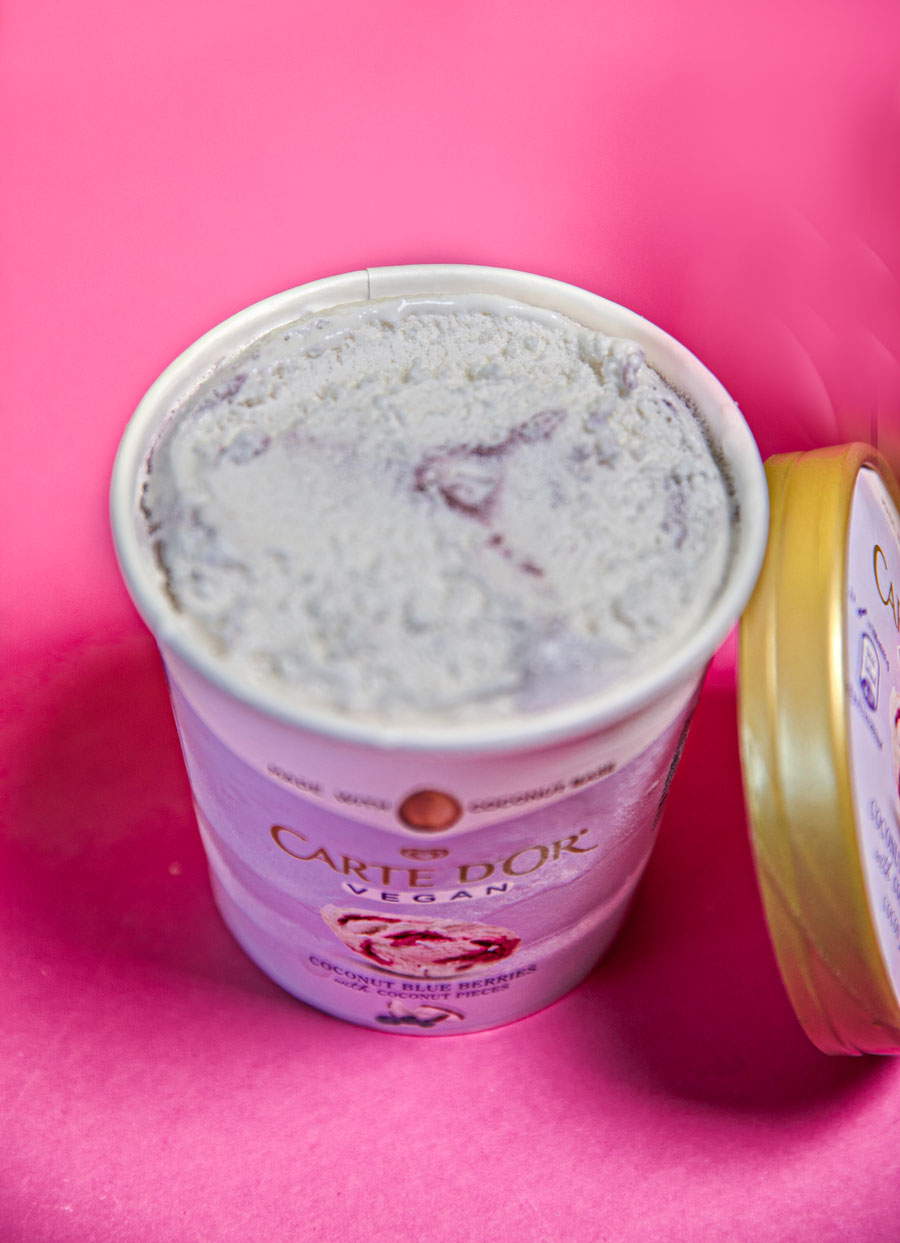 I sami smo iznenađeni da nam je jedan Carte d’Or sladoled ušao u izbor najboljih. S njihovom Belgijskom čokoladom nismo se usrećili na zadnjem testu, a ovu guilt free vegansku verziju sustavno smo izbjegavali jer je izgledala tako bezlično i dijetalno da nismo imali volje ni probati. Ipak, ovaj sladoled nije posve nezanimljiv. Prvo, baza su mu kokosovo mlijeko i kokosovo vrhnje. To mu daje udarni, nimalno profinjeni tropski okus koji na momente podsjeća na Tropical Blend, pa ako ste ljubitelj kokosa sigurno nećete ostati ravnodušni. S druge strane, proizvodi od kokosa često pate od vrlo neugodne masnoće koju realno mogu razbiti samo goleme količine limete i čilija. Ovdje su kokosovoj masnoći suprotstavili swirl od svježih šumskih borovnica neobično prirodne arome i okusa, koje nisu preslatke i dobro se slažu s kokosom. Jedan od glavnih aduta Carte d’Or Kokosa s borovnicom je 200-tinjak kalorija na 100 grama sladoleda, a nisu loše ni mrvice svježeg kokosa kojih je sladoled pun.