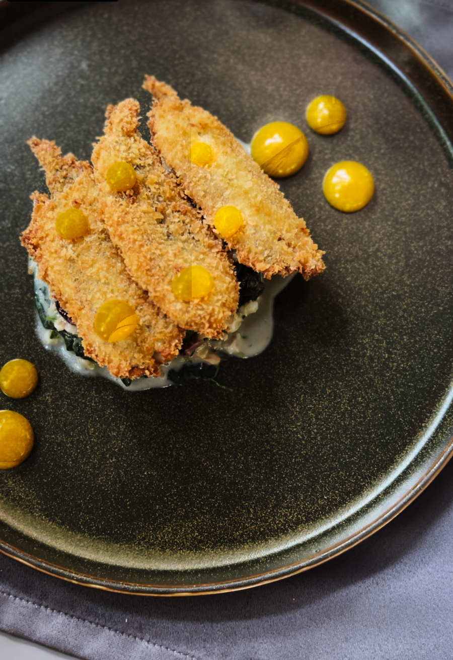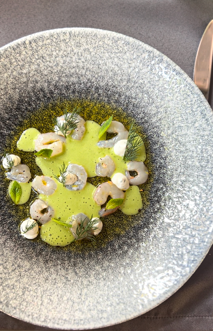 Ručak u dubokom, ventiliranom hladu Balonove terase na Prisavlju počeli smo finim, osvježavajućim zelenobijelim cevicheom od kozica, kojem je nažalost, nedostajao čili. Hrvatski bi bi chefovi trebali zanemariti averziju hrvatske publike prema ljutini i usvojiti pravilo da ceviche znači čili. Hrskavi pohani inćuni na orzotu spadaju među automatske bestselere.