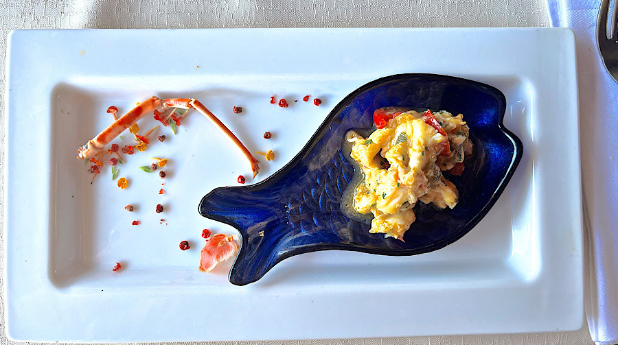 Sirovi škampi i tataki od tune čine zamaman tanjur s vrlo ukusnim umacima, dok je najbolji tanjur dana ipak određeni signature dish, salata od jastoga. Jastog je pomiješan s nekoliko začina, maslinovim uljem i limunom u savršenu emulziju u kojoj je svaki element pogođen od teksture, temperature do okusa.