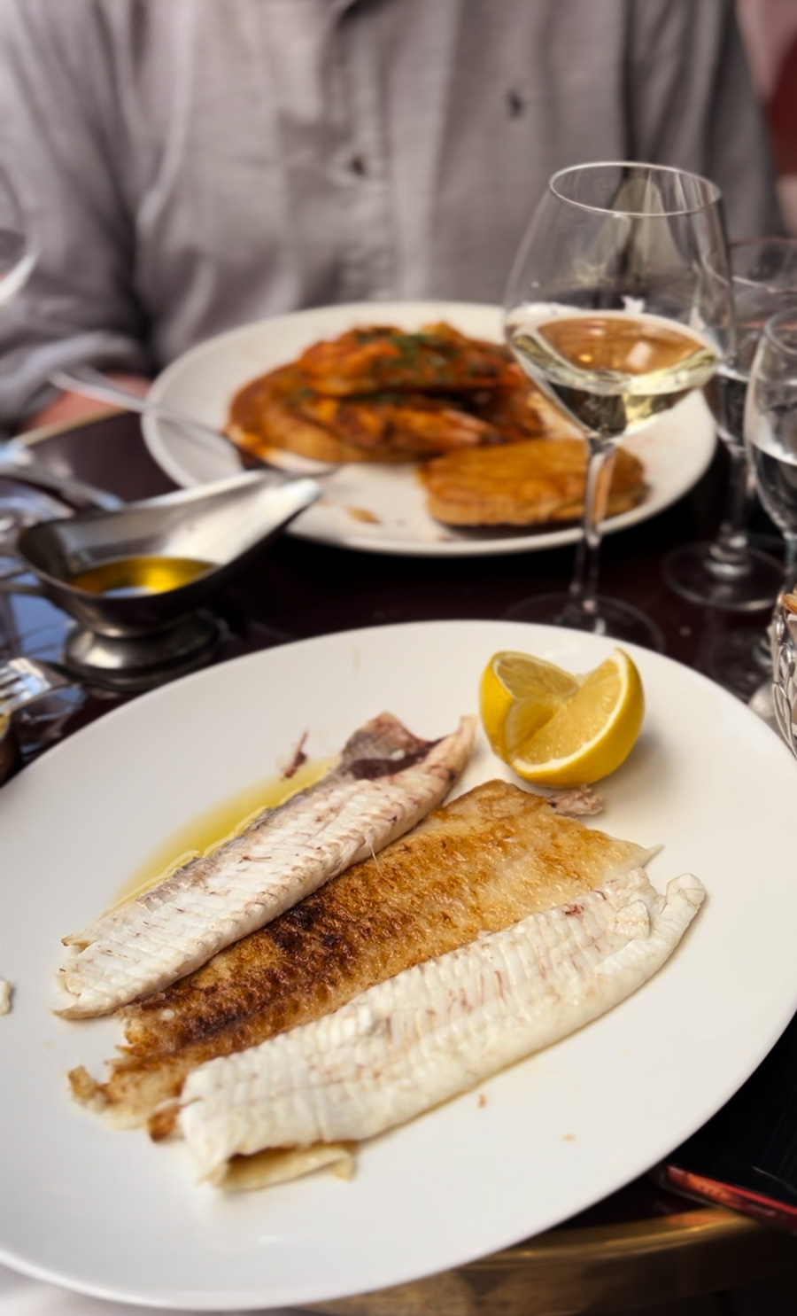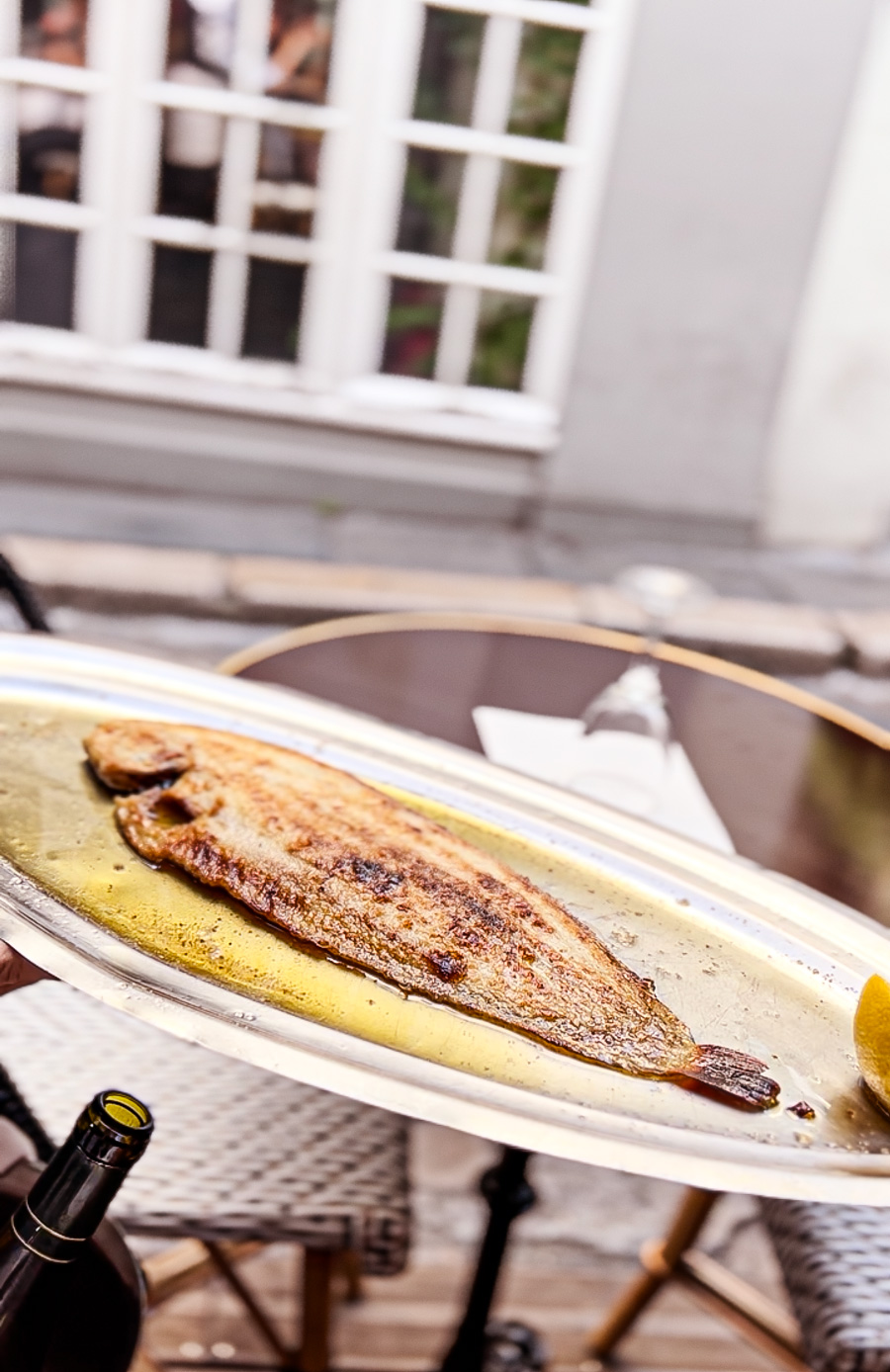 Prvo smo mislili popiti samo čašu ili dvije šampanjca (Roederer Collection košta 16 eura) no atmosfera starih uličica u Latinskoj četvrti malo nas je ponijela, pa smo ostali na kasnom popodnevnom ručku. Premda, nažalost, nudi i burratu i avokado, veći dio Procopeova menija doista ima povijesni karakter. Tu su klasična jela francuske građanske kuhinje poput jaja u majonezi, gratinirane juhe od luka ili Dugléréove pečene orade. Pa još starija jela kao što su originalna verzija Coq au Vin i hladetina od teleće glave, pa konvencionalna ali svojedobno važna jela poput lista meunière, koji je inicirao Juliu Child u francusku gastronomiju. Naručili smo jaja u majonezi i rakovicu s majonezom, a zatim vol au vent s  kozicama u umaku nantua i list meunière koji dolazi na stol sa zdjelicom rastopljenog maslaca. Premda je Le Procope danas prvenstveno turistički restoran, hrana je bila prilično dobra: osobito list i goleme kozice u vol au ventu. Uz bocu dobro ohlađenog chablisa, posjet Le Procopeu pretvorio se u jako ugodan kasnopopodnevni izlet u povijest Pariza.