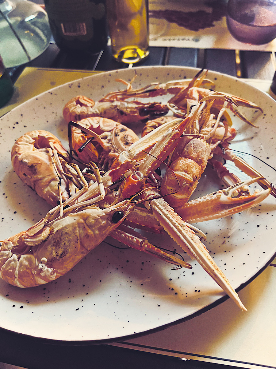 Hrana je ipak malo slabiji segment ponude, manje kreativna. Mogu se pronaći jela slična onima u turističkim lokalima, ali sva je hrana korektna, poput krčkih crnih šurlica sa škampima i vrlo finim umakom od rajčica, ili vrlo svježih škampa sa žara koje smo probali. Zapravo bi nas i najviše oduševila plata sa sirevima u kojoj dominiraju tvrdi sirevi, da se na njoj nije našao sir s tartufima koji kao da je mamac za turiste.