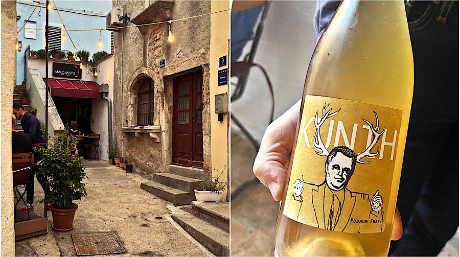 Iako se klasificira kao punokrvni restoran/bistro, Malo Misto je ipak wine bar u samom centru Krka. Primarni fokus je očito na vinskoj karti koja je ekstenzivna, bogata i profesionalno sastavljena. Vina su gotovo samo iz Hrvatske, ali su zastupljene sve glavne regije i sorte, što je za jedan mali lokal, manji od nekih kafića, uistinu pohvalno.