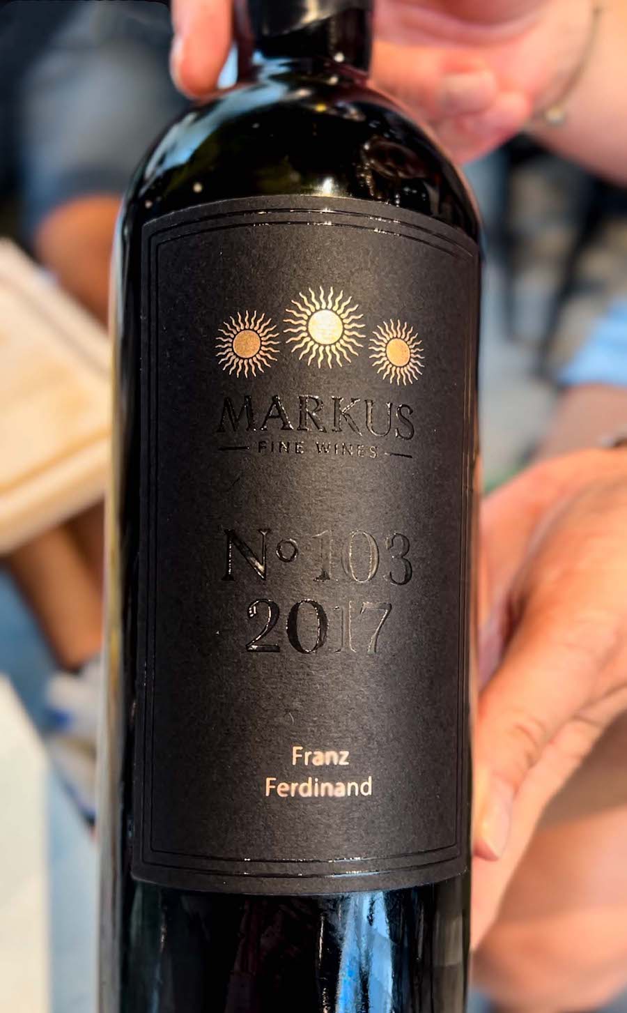 Fetivi je cuvee baziran na crljenku (tribidragu) s desetak posto babića. Na nosu je pun crvenog i crnog ljetnog voća, a okus slijedi nos. Fetivi je optimalno vino za roštilj, laganije steakove i plavu ribu. Veliko crno iz 2016. napravljeno je od caberneta i merlota iz Nadina. Iako smo probali niz starih Markusovih vina, moramo priznati da za Veliko crno nismo čuli sve do tastinga u vinskom baru Markus. Veliko crno opravdava svoje ime: ono je veliko, moćno, ali i elegantno, dugo i puno atraktivne međuigre između zrelih, veoma snažnih cabernetovih tanina i merlotove prirodne voćno čokoladne slatkoće.