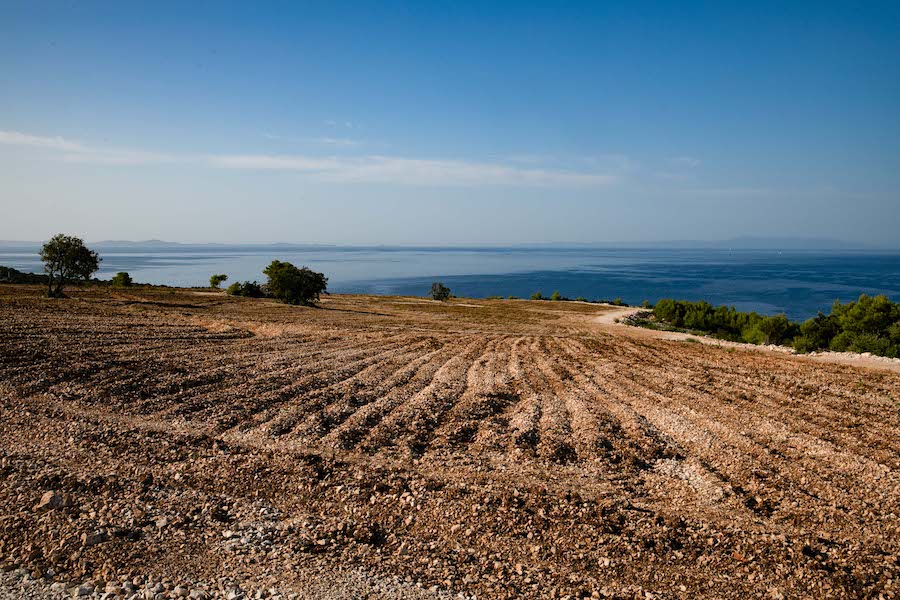U nedjelju 23. srpnja u pola sedam ujutro našli smo se sa Slavenom Jeličićem u splitskoj trajektnoj luci, kako bismo uhvatili trajekt za Šoltu u 6 i 45. Odlučili smo ići tako rano da bismo izbjegli najgore vrućine, ali i zato što je jutarnje svjetlo bolje za fotografiranje. Čim smo stigli na Šoltu, odvezli smo se do položaja Zahoda, koji je već uređen za sadnju. Radi se o nekoliko hektara na južnoj strani otoka, gdje se donedavno posve neprohodna šikara.Sada je Zahoda, ili Limestone Ridge, precizno uređena, podijeljena na nekoliko ploča, s novim suhozidom, malom meteorološkom stanicom, prelijepim pogledima na more i na uvale koje većina posjetitelja Dalmacije nikad nije vidjela. Kako je Jeličić došao do Zahode?