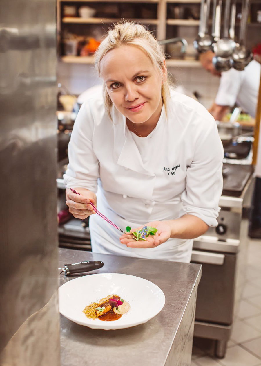 Pa se tako na meniju chefice Ane Grgić Tomić nalaze krem juha od mrkve sa štapićima kuhane mrkve s medom, poširani file brancina s kremom od batata i ekstra djevičanskog maslinovog ulja, kremasti rižoto s povrćem i pečenom piletinom, krema od krumpira i mladog špinata, riža na mlijeku s vanilijom i bananama, kolač od mrkve i badema, voćni smoothie i svježe sezonsko voće. Za bebe, Esplanadina chefica priprema kašice od sezonskog voća i povrća, u dogovoru s roditeljima i prema prehrambenim navikama djece.