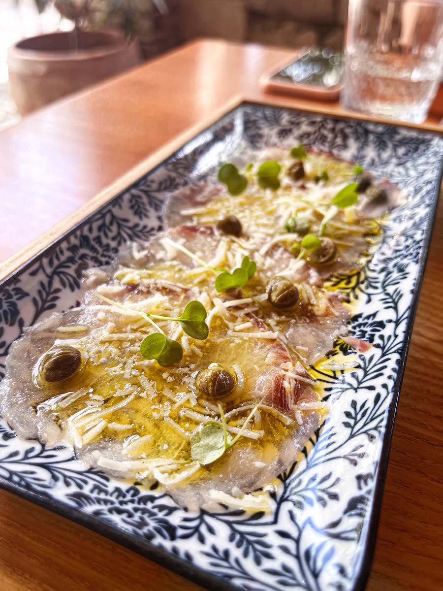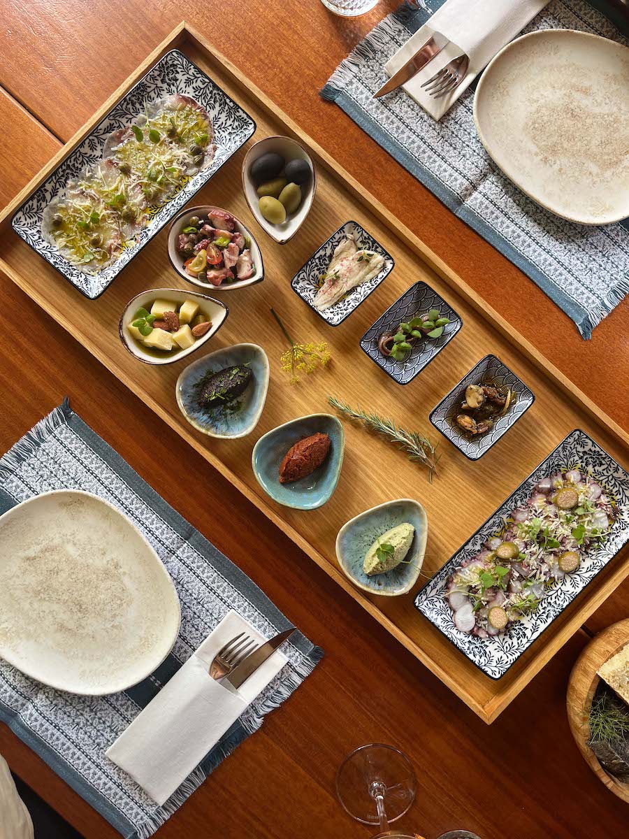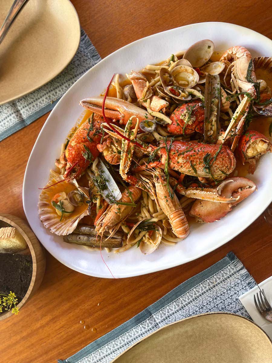 Rakovi, posluženi u najboljem jelu dana, mogu se loviti samo četiri dana u mjesecu. Kruh, kao i mnogi otočni restorani, rade sami. Tamo gdje može, Prslika izvrsno predstavlja svoj kraj. Tamo gdje je to teže, nabavlja prvu najbolju alternativu. Ručak smo započeli velikom ribljom platom na kojoj su se našli carpaccio morskog psa prožet visokim kiselinama, odlična rustikalna hobotnica na salatu s vrlo ukusnim rajčicama, godinu dana odležani paški sir u maslinovu ulju, paštete od maslina, rajčica i škampa i motara, dagnje, srdelice i carpaccio od hobotnice. Velika demonstracija čistih morskih okusa. Najviše nam se svidjela intepretacija hobotnice na salatu, no i oba su carpaccia bila vrhunska, kao i pašteta od škampa.