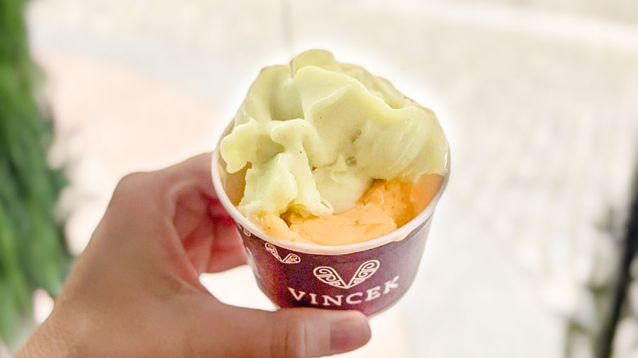 Naravno, kao i svi sladoledi iz ove kategorije, Vincekovi veganski sladoledi pate od manjka dobre slatkoće. Ne da nisu slatki, zeleni čaj je čak i nešto slađi nego što bi trebao biti, nego je riječ o onoj ispraznoj slatkoći karakterističnoj za razne stevije, zaslađivače od kokosa i trske, sirupe i silčno. Bez obzira na to, za razliku od Vincekovih preslatkih i konvencionalnih sladoleda iz standardne ponude, veganski sladoledi u Vis a Vis su suptilni, svježi i dopadljivi.