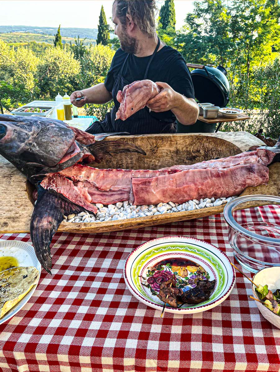 Kroz izrazito ugodno druženje mogla se probati sočna dimljena sabljarka s grila koja se tranširala i pekla pred gostima, burger od junetine, Kumparičkini odležani i mladi sirevi, još živi ježinici, vongole, impresivan red malih snakova od rajčice, kukuruza i sirnih namaza te prilično dobri kokteli Stare Škole nazvani po školskim predmetima.