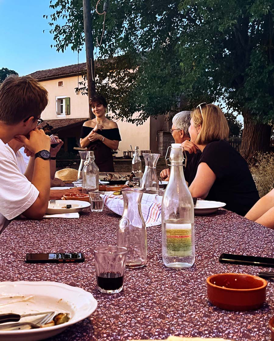 Večera zapravo započinje obilaskom farme koza kojih obitelj Winkler sad već ima više od tristo, a onda svi sjedaju za stol koji možda maksimalno prima dvadesetak gostiju po večeri. U režiji mlađih Winklera slijedi mali spektakl, neka vrsta ogoljenog fine dininga, potpuno prirodnog i jednostavnog, usredotočenog na ono što je upravo ubrano i na kozje mliječne proizvode. Jelovnika nema, svako novo jelo je pojedinačno iznenađenje koje kaotično ali s puno srdačnosti dolazi na stol.