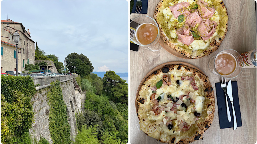Kad smo došli do pizzerije, smještene na lijepim zidinama Labina s predivnim pogledom, restoran je bio ugodno popunjen lokalcima i strancima. Rumore naravno ne nudi ništa osim pizze, tek ponekih pizza sendviča, kako bi i trebalo biti. Kad imate dobru pizzu ne zamarate kuhinju nepotrebnim elementima.
